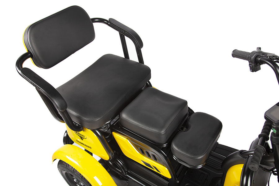 Пикник, небольшое путешествие или поездка до магазина - веселее вместе с новинкой от Rutrike - пассажирским электрическим трициклом Бумеранг. Ведь на этом ярком, компактном и резвом малыше уместятся трое человек! А при необходимости дополнительные сиденья складываются, открывая доступ к большой, прочной и вместительной корзине.Характеристики