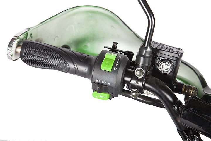 Как и старшие братья, этот электроквадроцикл подготовлен для путешествий по бездорожью. У него независимая подвеска передних колес и амортизатор задней оси. Все электронные приборы полностью герметичны и не подвержены воздействию влаги, а их расположение сводит к минимуму возможность механического повреждения.
