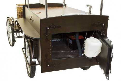 Вкусно поесть в России любят, а если это можно сделать по дороге, на бегу, не пытаясь найти кафе или киоск с едой, то это всегда бесценно. Но наш человек также очень придирчив и хочет, чтобы место продажи еды вызывало доверие и желание что-то купить. Электробар Фортуна 777 Люкс замечательно выглядит и может быть также великолепно оборудован. На него можно установить много разных аппаратов по приготовлению или раздачи любой еды- попкорн, сосиски, вата, соки, кофе, выпечка… Необычность такой подачи привлекает клиентов и окупаемость таких баров быстрая и легкая. В этом можно убедиться в любом крупном городе мира, где таких баров везде много и популярность очень большая. Вариантов внешнего оформления тысячи, предназначений столько же. К тому же много полезной площади под рекламу, что дает дополнительный заработок. Мобильность этих электрорикш является их главным преимуществом, всегда можно переместиться на более удобное или выгодное место, заехать на парковку для хранения, съездить для загрузки дополнительной порции еды на продажу. А обслуживание заказов на пикниках, корпоративных вылазках на природу? Это отдельное направление и выгоды для владельцев электробара.