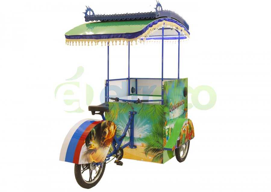 Велорикша Муравей Z1 Холодильник Автономный Солнечный Электро - максимально возможная комплектация базовой модели. Имеет автономную холодильную камеру, панели солнечных батарей и двигатель мощностью 500W.Благодаря такой такой комплектации станет поистине незаменимой для передвижной торговли в теплое время года, сохраняя прохладительные напитки и мороженное в товарном виде.Экономичность велорикш ни у кого не вызывает сомнения. За счет сменного аккумулятора вам не придется тратить время на перезарядку. Просто замените его и можно снова отправляться в путь.Комплектация: