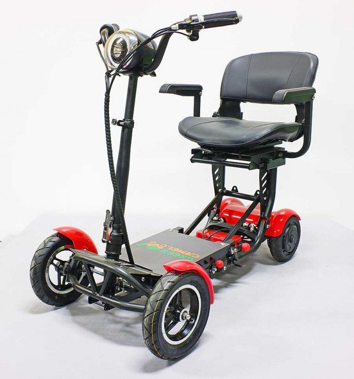 ОписаниеЭлектротрицикл GreenCamel Colt 501 (36V 2x250W задние мотор-колеса) предназначен для комфортного передвижения маломобильных групп населения в городской среде. ВНИМАНИЕ: не является инвалидным креслом! Не подходит для неходячих больных! Оборудован комфортным креслом и широкой площадкой для удобства размещения взрослого человека. Движение вперёд-назад осуществляется поворотом рукоятки газа, торможение сбросом газа и рычагом тормоза на левой ручке. На руле установлены кнопки звукового сигнала, света, переключения скоростей и включения заднего хода R. Корпус светодиодной фары также является информационным LED-дисплеем, выводящим данные по остатку заряда батареи. За передвижение отвечают два задних мотор-колеса общей мощностью 500Вт и развивающих скорость до 18 км/ч при максимальной загрузке в 120 кг. Запас хода до 25 км. Для удобства перемещения электросамокат компактно складывается в 2 раза и катится за ручку на передних колёсах сравнимо с чемоданом средних размеров (при складывании сиденье необходимо отстегнуть от самоката). У данной модели отличная курсовая устойчивость в поворотах благодаря геометрии колёс и низкому центру тяжести!