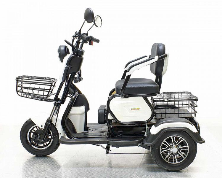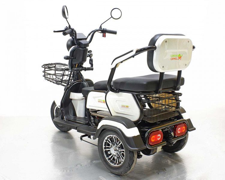 Электротрицикл Фродо X7 от команды GreenCamel – это образец универсального городского электротранспорта для семьи из трех человек. Модель Фродо X7 путём нескольких манипуляций может трансформироваться из трицикла с широким креслом для водителя в семейный транспорт со сдвижным сиденьем для пассажира и раскладным сиденьем для ребёнка перед водителем. В комплектацию трицикла входит передняя корзина и задняя большая корзина. Оптимальная колёсная формула с одним передним колесом и ведущей задней парой обеспечивает устойчивость в поворотах. Задняя пара гидравлических амортизаторов отвечают за комфорт в поездках. Передний и задний барабанные тормоза и ножной рычаг заднего тормоза отвечают за быстрые безопасные установки. Дальность пробега на штатной гелевой SLA батарее с ёмкостью 20Ач до 50 км. Трицикл оснащен яркой светодиодной фарой с режимами дальнего и ближнего света, ходовыми огнями, поворотниками, стоп-сигналом, зеркалами заднего вида и может перемещаться на выделенной полосе дороги при наличии водительского удостоверения и возрасте водителя старше 16 лет (согласно изменениям в ПДД с 1.03.23 г.). Трицикл Фродо X7 оборудован сигнализацией с брелоком управления, так что вы не будете переживать за сохранность вашего индивидуального транспорта. Очевидным плюсом покупки индивидуального электротранспорта от компании GreenCamel является расположение компании и осуществление гарантийного обслуживания на территории РФ с постоянно пополняемым складом продукции и отделом ремонта аккумуляторных батарей. А также оперативная онлайн поддержка в мессенджерах на протяжении всего срока службы техники.