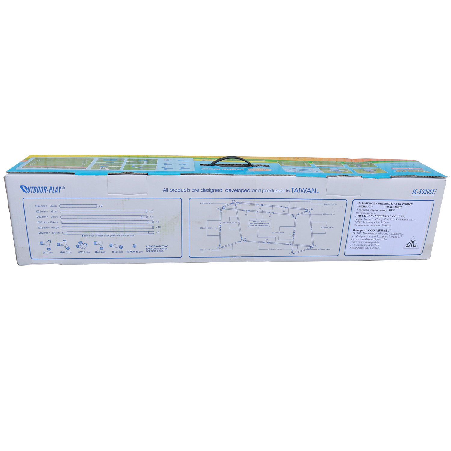 Соединения сделаны из материала ABS. Для усиления прочности соединений используется ударопрочный материал. Ворота изготовлены из стальных труб. Соединение труб осуществляется с помощью крепления с двумя замками, что обеспечивает дополнительную стойкость к ударам. В комплекте 8 анкеров.
