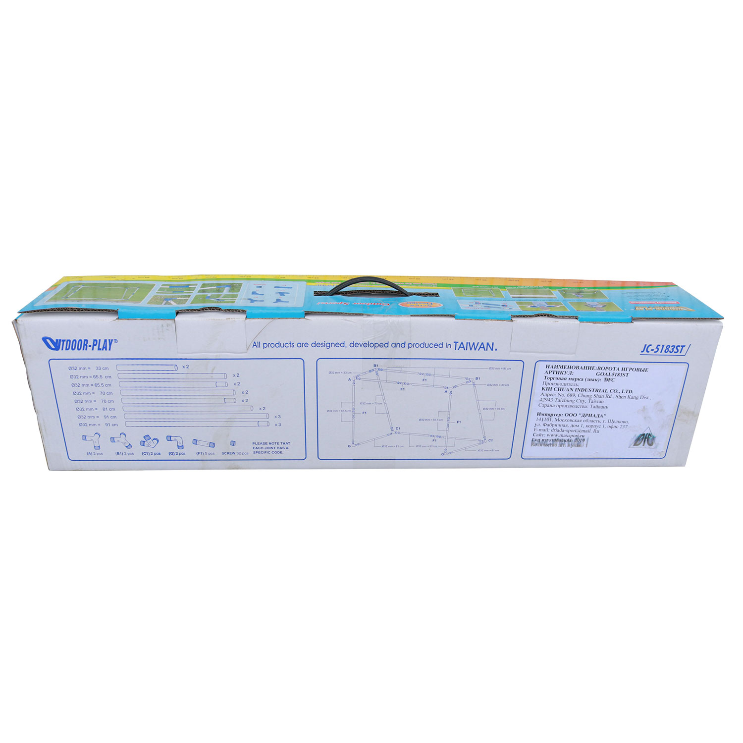 Соединения сделаны из материала ABS. Для усиления прочности соединений используется ударопрочный материал. Ворота изготовлены из стальных труб. Соединение труб осуществляется с помощью крепления с двумя замками, что обеспечивает дополнительную стойкость к ударам. В комплекте 4 анкера.