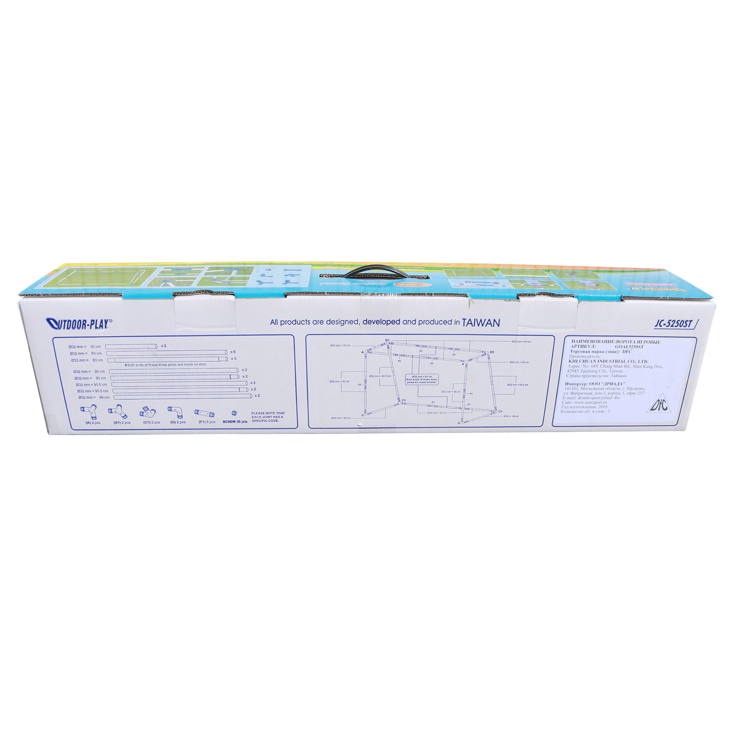 Соединения сделаны из материала ABS. Для усиления прочности соединений используется ударопрочный материал. Ворота изготовлены из стальных труб. Соединение труб осуществляется с помощью крепления с двумя замками, что обеспечивает дополнительную стойкость к ударам. В комплекте 8 анкеров.