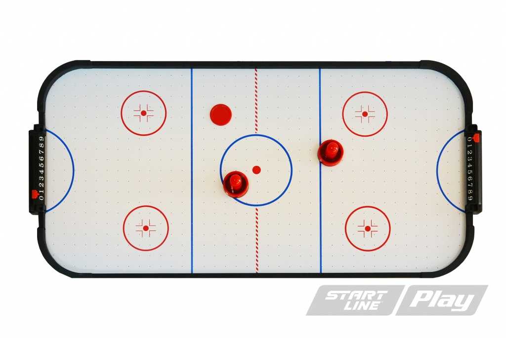 Тип игры: аэрохоккей Габариты стола: 1060 х 508 х 200 мм Размер игрового поля: 980 х 480 х 3 мм / 3 фута Размещение: настольное Материал корпуса, опор, игрового поля: МДФ, покрытие ПВХ Бита: 2 шт. Ø 95 мм Шайба: 2 шт. Ø 60 мм Габариты упаковки: 1070 х 560 х 95 мм Вес нетто / брутто: 6,5 / 7.5 кг Бренд / производитель: Start Line Play (Россия) В комплекте: воздушный компрессор, 12V, питание от сети 220V Артикул: SLP-4020R В наличии: есть