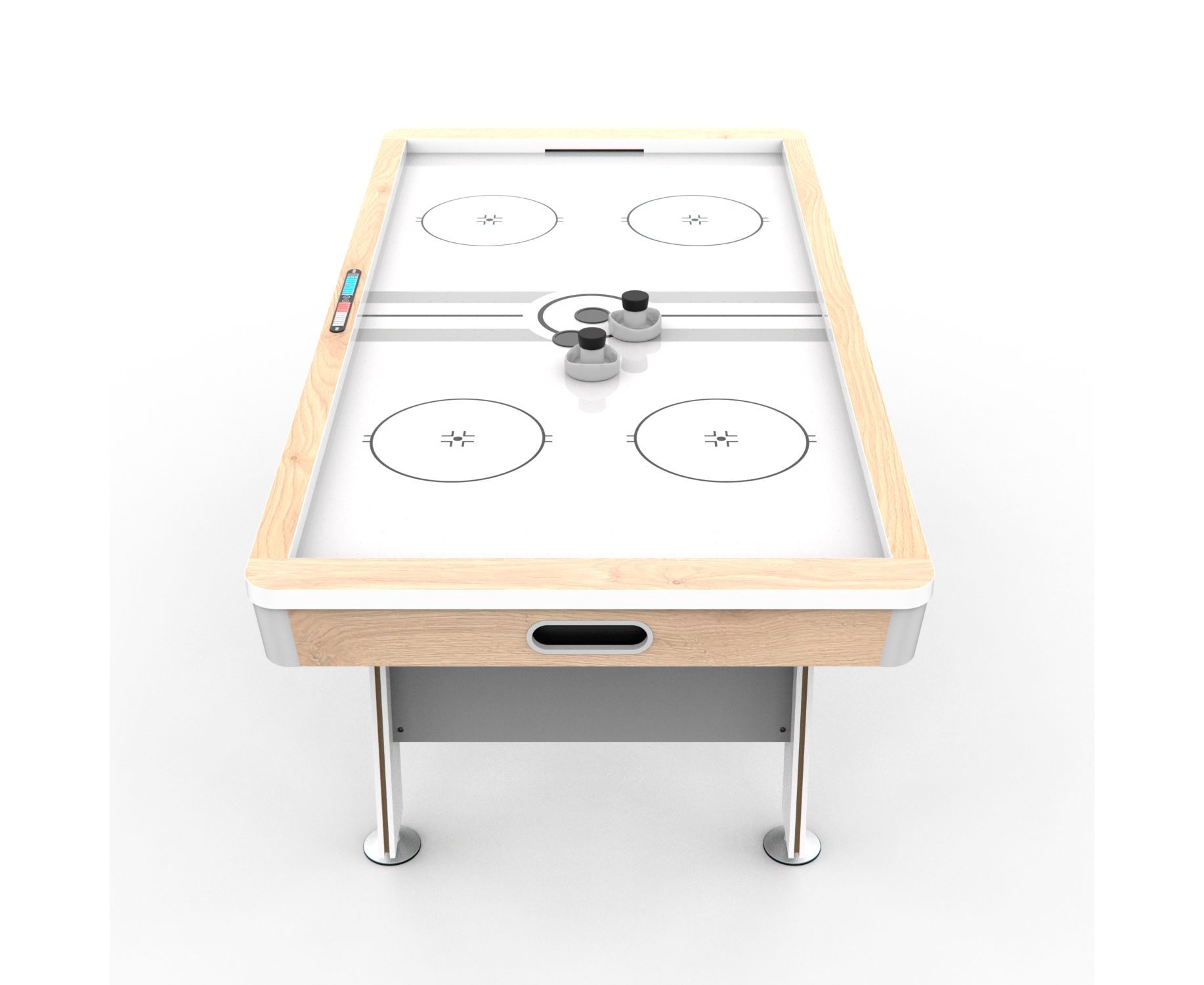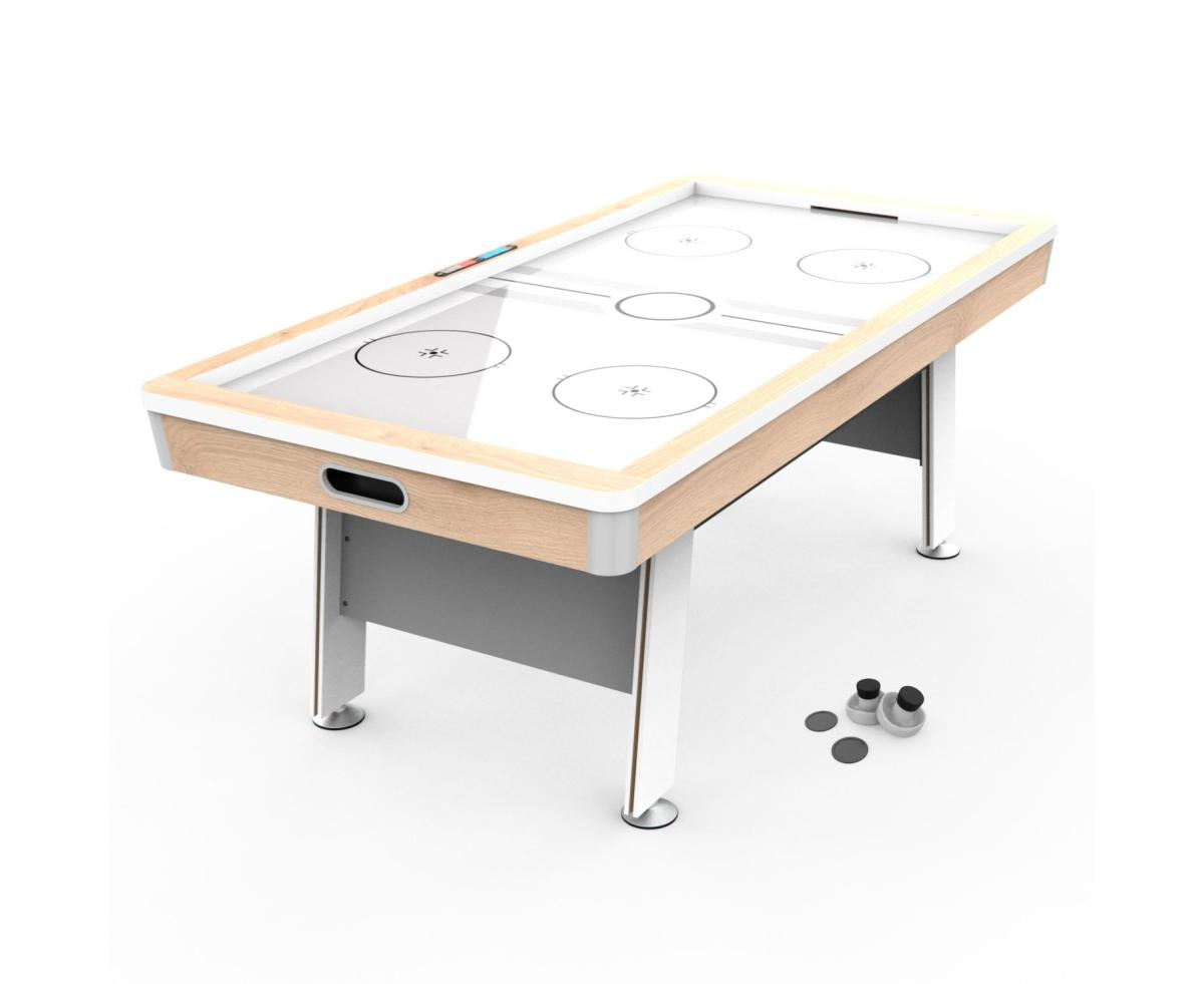 Игровой стол - аэрохоккей DFC DAISY AT-300 размером 84 дюйма - лучший выбор для большой семьи или компании. Отделка цвета белёный дуб и дизайн в стиле хай-тек лаконично впишут игровой стол в интерьер вашего дома. Отличительной чертой этого стола является не только отделка, но и электронный счётчик очков с подсветкой. Его необычная форма дополняет общий концепт современного дизайна аэрохоккея DAISY.