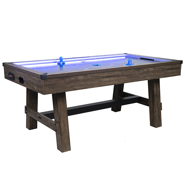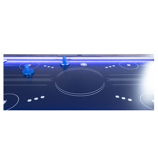 Компенсаторы неровности пола позволяют выровнять стол даже при установке на неровную поверхность и устранить качение. Размер стола 6 FT, длина – 183 см. Стол оснащен электронным счетчиком очков. Мощный вентилятор предотвращает трение шайбы об игровое поле, обеспечивая хорошую скорость и динамичность игры.