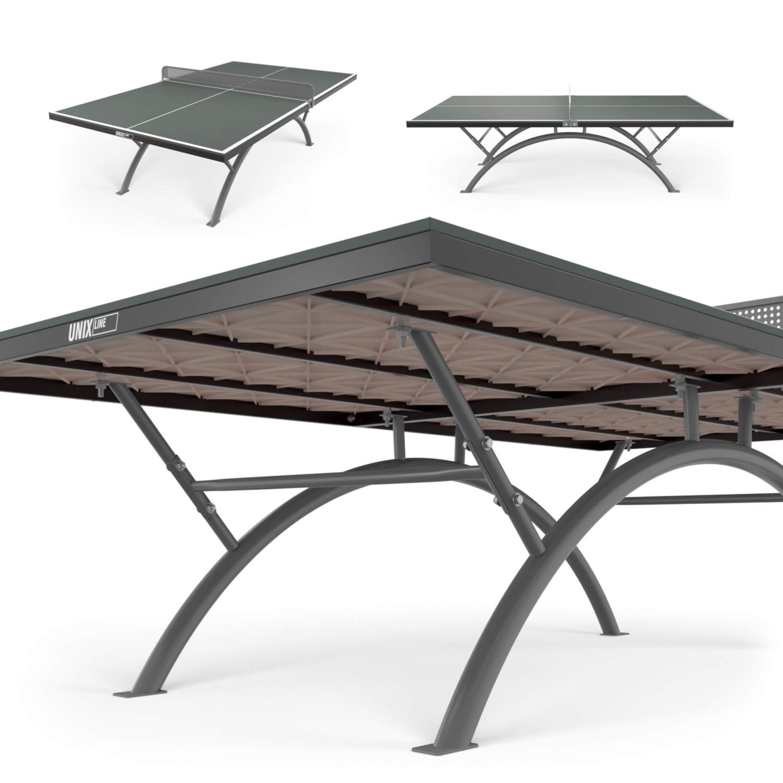 Основой металлической рамы теннисного стола UNIX Line являются опоры из стальной трубы Ø60 и толщиной 1,4 мм. Благодаря таким характеристикам конструкции теннисный стол сохраняет жесткость и устойчивость на любых покрытиях.