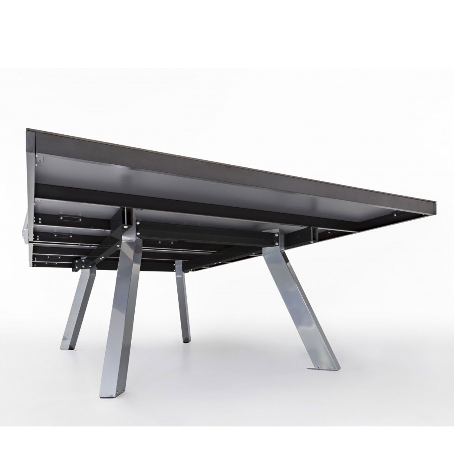 Надежный всепогодный стол с привлекательным дизайном. Игровая поверхность изготовлена из 10 мм меламиновой плиты для лучшего отскока шарика. При необходимости стол может быть привинчен к полу.