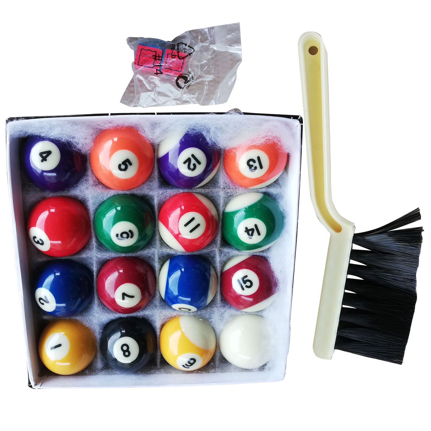 В комплекте все необходимые акссесуары: 2 кия, набор шаров для пула, треугольник, щетка, 2 мела.
