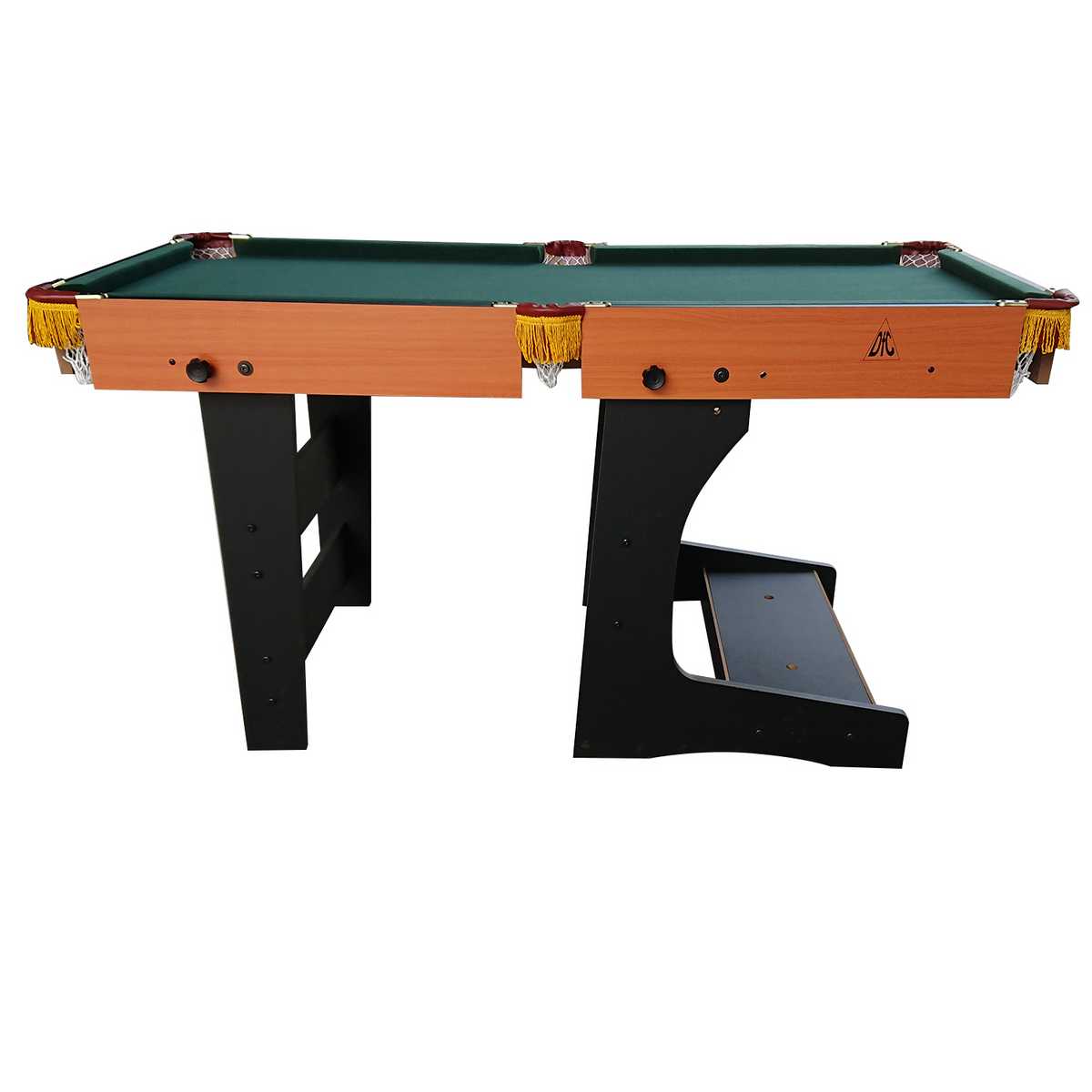 В комплекте все необходимые акссесуары: 2 кия, набор шаров для пула, треугольник, щетка, 2 мела.Размер стола 150 х 75 х 78,7 см Размер игрового поля 5 футов Диаметр шара 1,75" / 45 мм Длина кия 48" / 120 см Размер упаковки 155 х 75 х 16,5 см Вес 45 / 50 кг Бренд DFC Страна производства Китай Гарантия 12 месяцев Характеристики