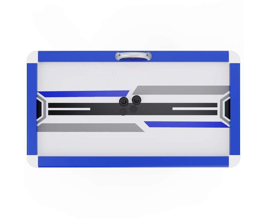 Аэрохоккей DFC AT-520 оснащён мощным вентилятором, работающим от сети 220 В, который создаёт равномерный воздушный поток по поверхности стола. За счёт этого шайба легко и быстро скользит по полю, обеспечивая максимальную динамику игры и реалистичный эффект настоящего хоккейного матча.