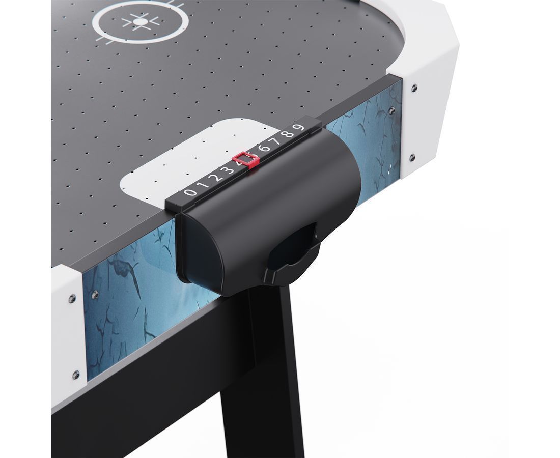 Встроенный вентилятор на 220В создает воздушную подушку, по которой шайба скользит практически без трения — именно так достигается эффект настоящего аэрохоккея. Электронный счетчик ведет учет забитых шайб, избавляя игроков от споров и добавляя соревнованию профессиональный дух. Размер стола — 135,5 х 67,6 х 81 см — позволяет разместить его даже в небольшой квартире, а прочные опорные ножки обеспечивают устойчивость во время динамичной игры.