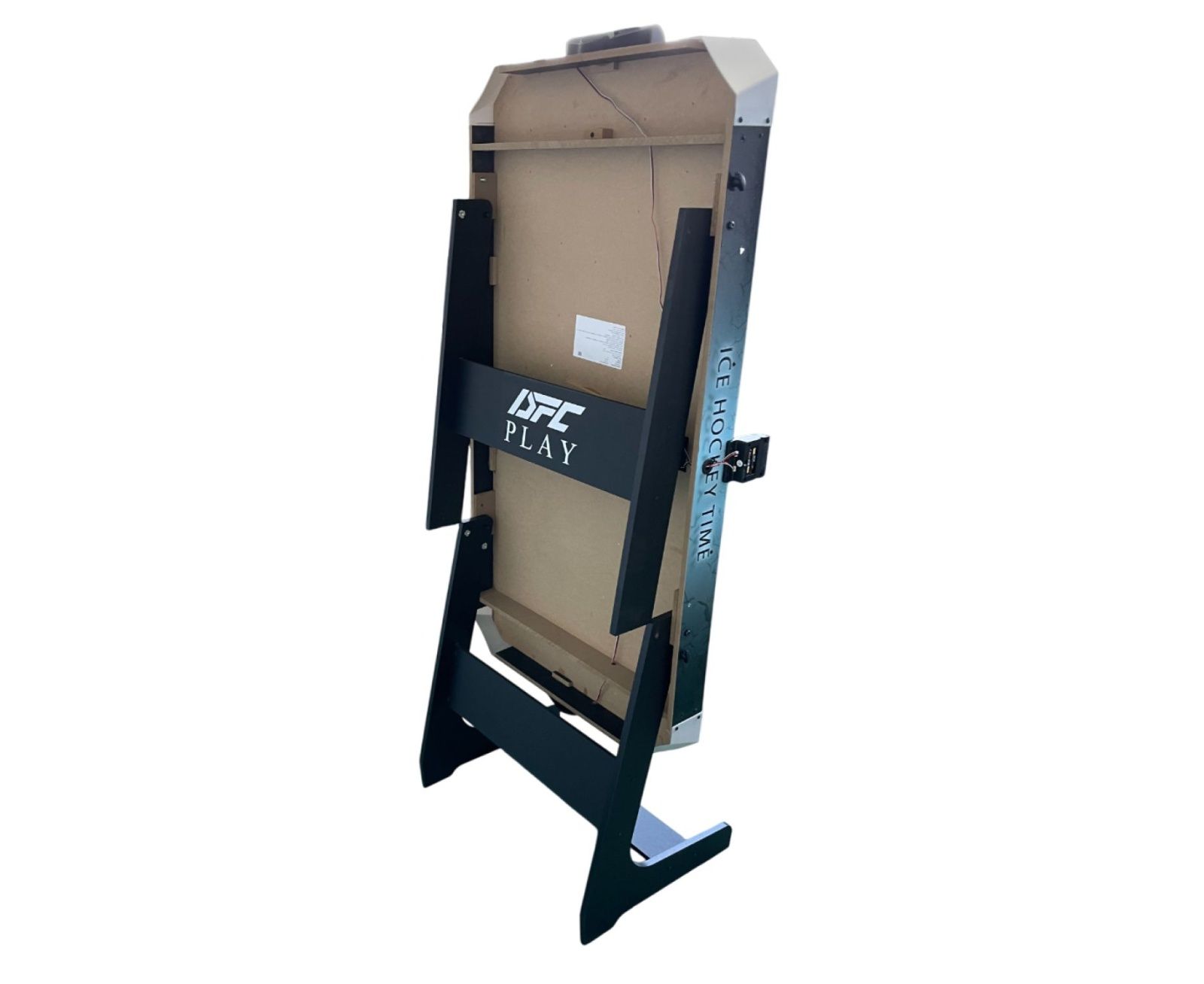 Игровое поле стола выполнено из качественного МДФ с бумажным покрытием, что гарантирует гладкую поверхность для легкого скольжения шайбы. Толщина поля 3 мм, бортики высотой 15,5 мм и толщиной 12 мм защищают шайбу от вылета, обеспечивая комфорт и безопасность игры. Основание стола изготовлено из МДФ с ПВХ-покрытием, что делает конструкцию долговечной и устойчивой к износу.