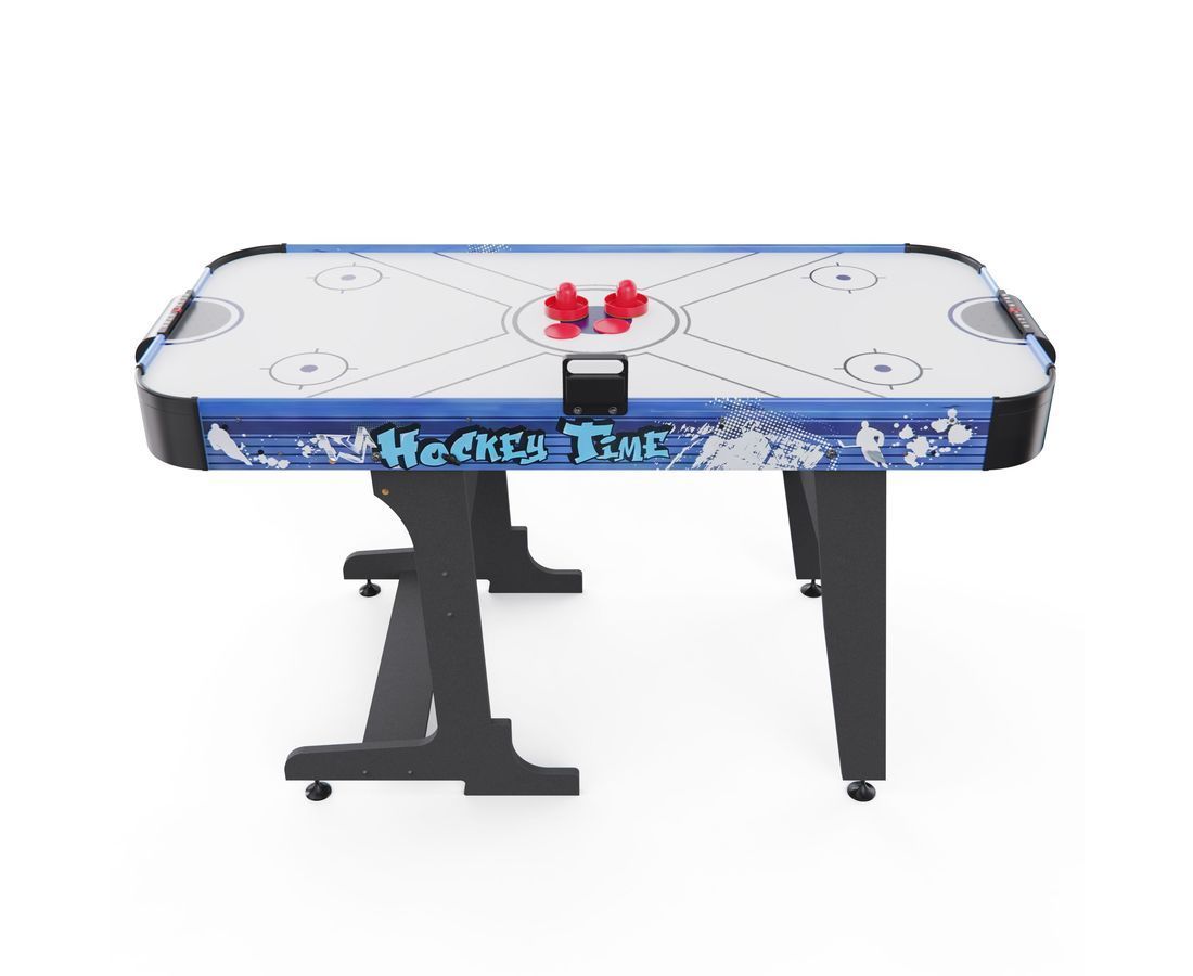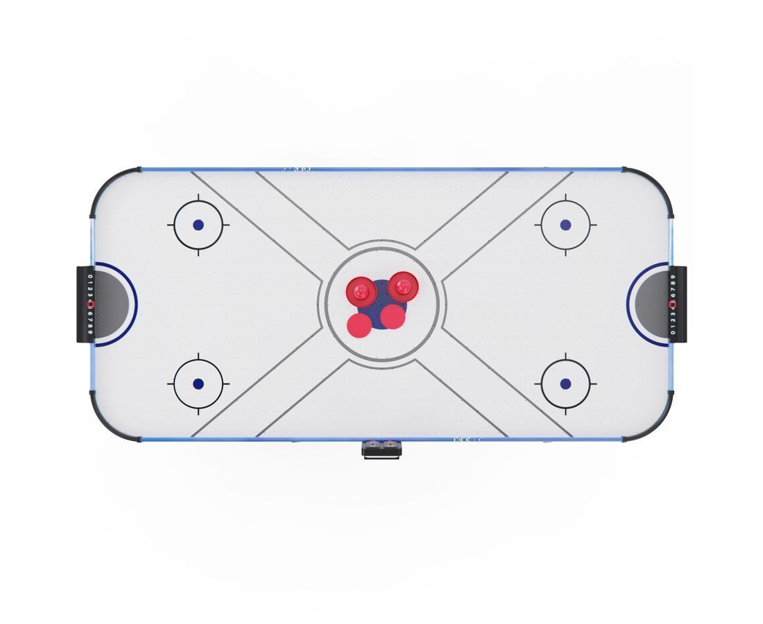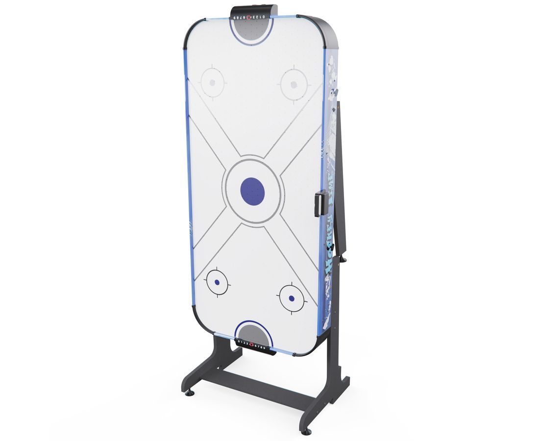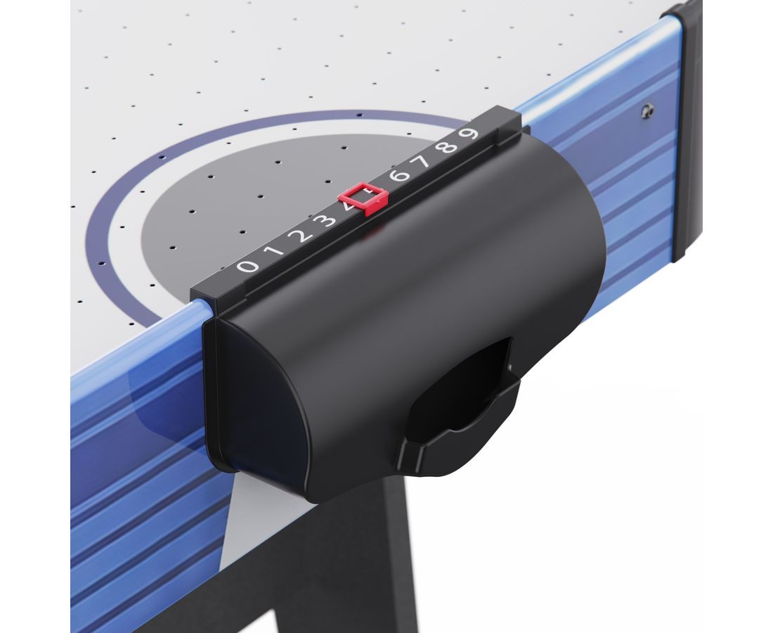 Встроенный вентилятор на 220В создает воздушную подушку, по которой шайба скользит практически без трения — именно так достигается эффект настоящего аэрохоккея. Для удобства игроков стол оснащён электронным и механическим счётчиком очков, что позволяет отслеживать результаты в реальном времени.