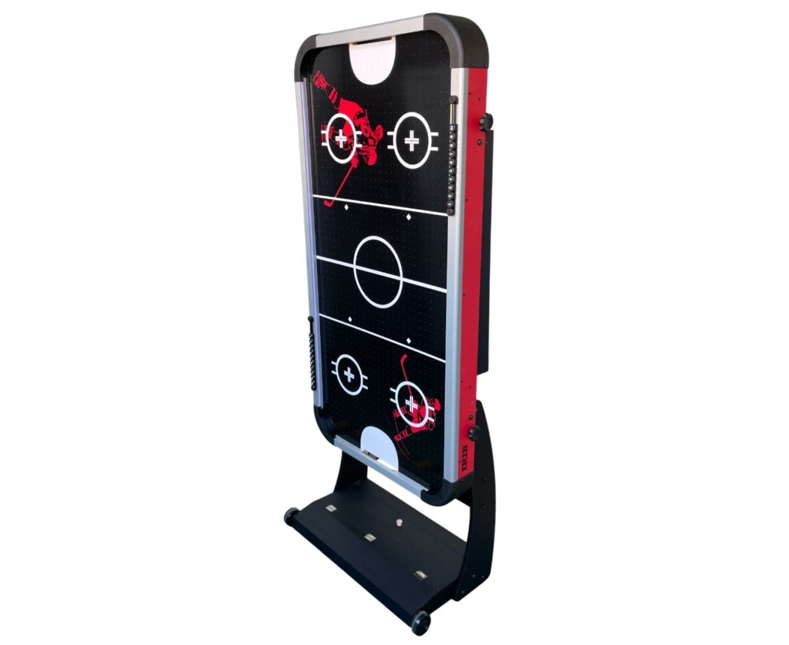 Благодаря удобным размерам (152,5 x 76 x 81 см) стол идеально подходит для домашнего использования, а складная конструкция стола особенно удобна для тех, кто хочет экономить место — стол можно легко сложить и убрать с помощью транспортировочных роликов до следующей игры. Хоккей станет отличным вариантом для семейных вечеров, дружеских турниров и веселого досуга.
