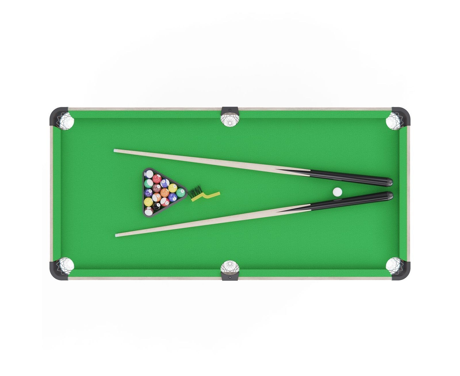 В набор входят все необходимые принадлежности: 2 кия, комплект шаров, 2 мелка, треугольник для расстановки и щётка для ухода за покрытием. Можно сразу начинать играть без дополнительных покупок.
