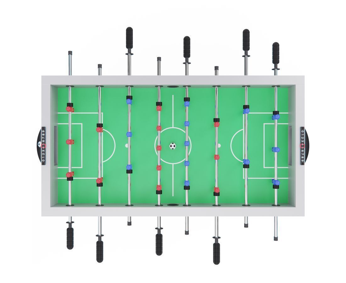 Игровая зона настольного футбола продумана до мелочей: бортики толщиной 12 мм, высотой 10,4 см обеспечивают комфортное ведение мяча, а толщина самого игрового поля — 3 мм — способствует плавному скольжению. В комплект входят 2 мяча диаметром 32 мм, что позволяет сразу начать игру. Фигурки игроков имеют высоту 96 мм и установлены на прочных металлических направляющих с удобными прорезиненными ручками.