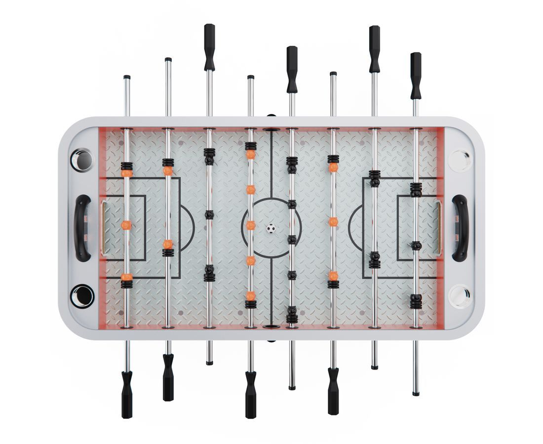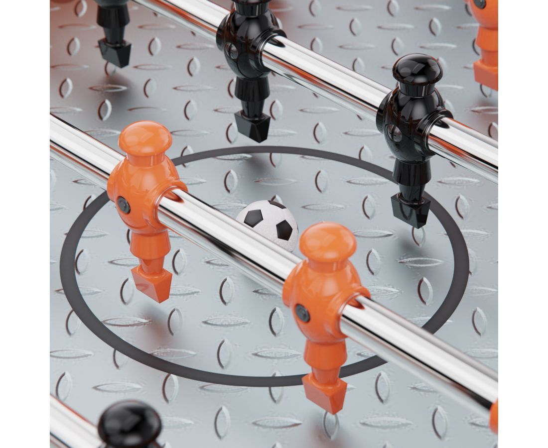 Размер стола — 144 х 76 х 87 см, а игровое поле — 118 х 68 см. Такая площадь оптимальна для маневров, точных ударов и зрелищной игры. Размер мячей — 36 мм, что соответствует стандарту для настольного футбола и обеспечивает отличную управляемость.