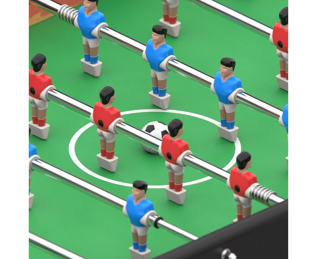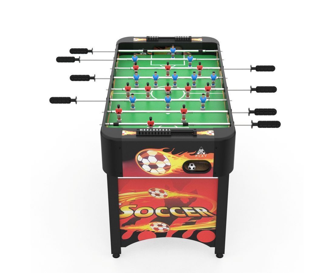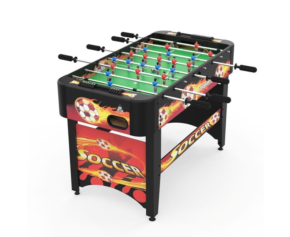 ОписаниеИгровой стол-футбол DFC INFERNO SB-ST-29398S для домашнего использования. Боковые стороны из МДФ ламинированным ПВХ высотой 19,5 см и толщиной 12 мм. Стороны со стороны игроков высотой 19,5 см и толщиной 9 мм. Телескопические стержни диаметром 13 мм с хромированным покрытием. В комплекте 2 футбольных мяча 31 мм диаметром.