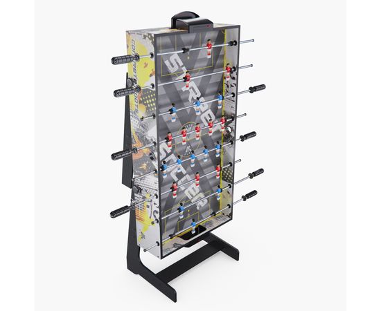 Ламинированное ПВХ покрытие игрового поля придает столу привлекательный вид и повышает его износостойкость. Размеры игрового поля составляют 117 х 58 см, а его толщина 4,2 мм, что делает игру комфортной и захватывающей. Благодаря складной конструкции стол легко сложить и убрать в целях экономии пространства дома.
