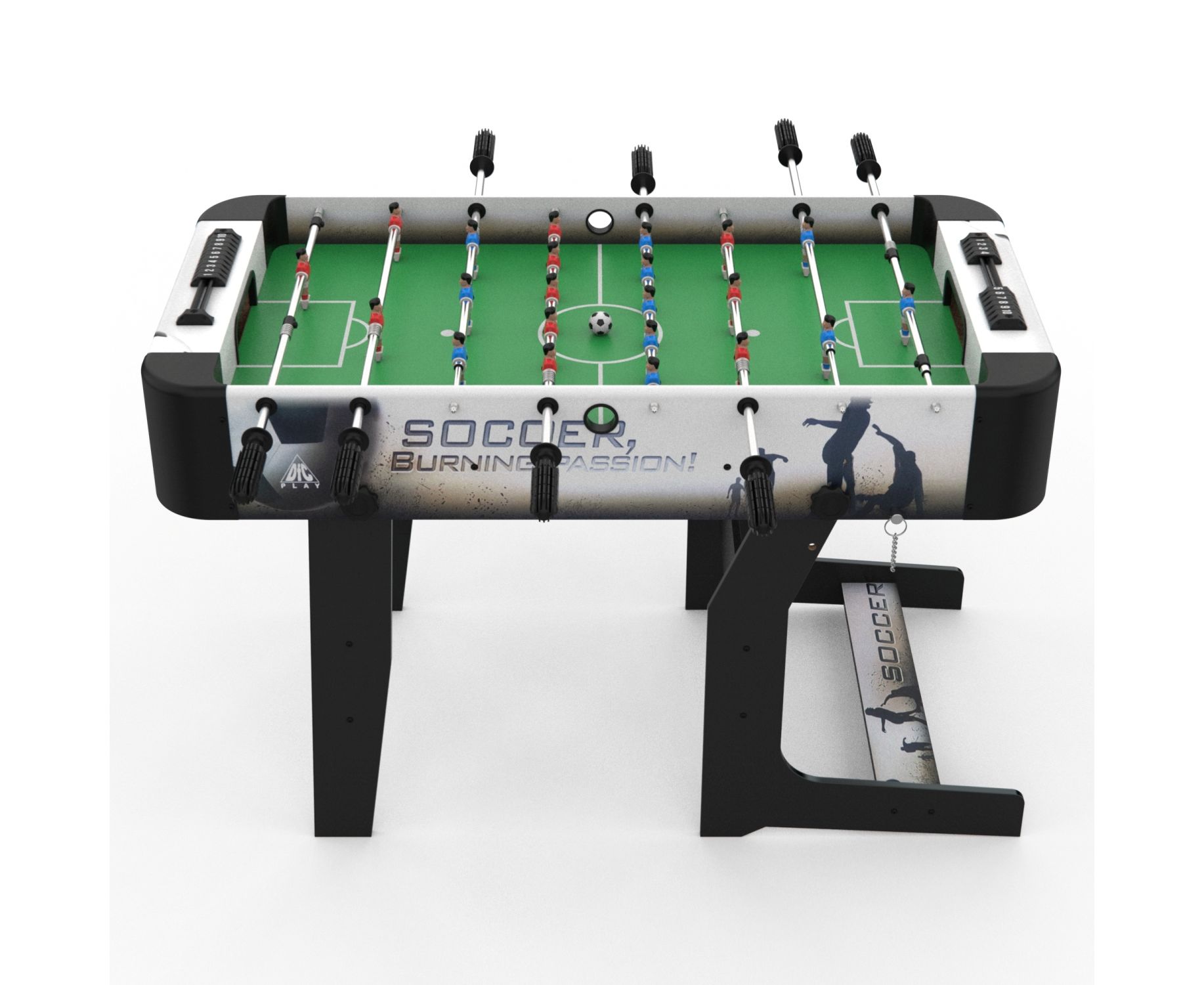 ОписаниеИгровой стол-футбол DFC SOCCER BP SB-ST-29398 для домашнего использования. Складная модель. Боковые стороны из МДФ ламинированным ПВХ высотой 19,5 см и толщиной 12 мм. Стороны со стороны игроков высотой 19,5 см и толщиной 9 мм. L-образная ножка из МДФ толщиной 15 мм, средняя – 12 мм. Телескопические стержни диаметром 13 мм с хромированным покрытием. В комплекте 2 футбольных мяча 31 мм диаметром.