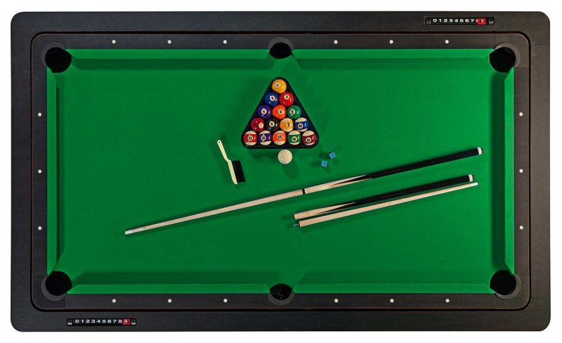 - Игровое поле пул — 176 х 85 x 1,5 см; аэрохоккей — 184 х 94 x 0,3 см; теннис — 234 х 152 x 1,5 см; рулетка, покер, обеденный стол — 219 х 132 см