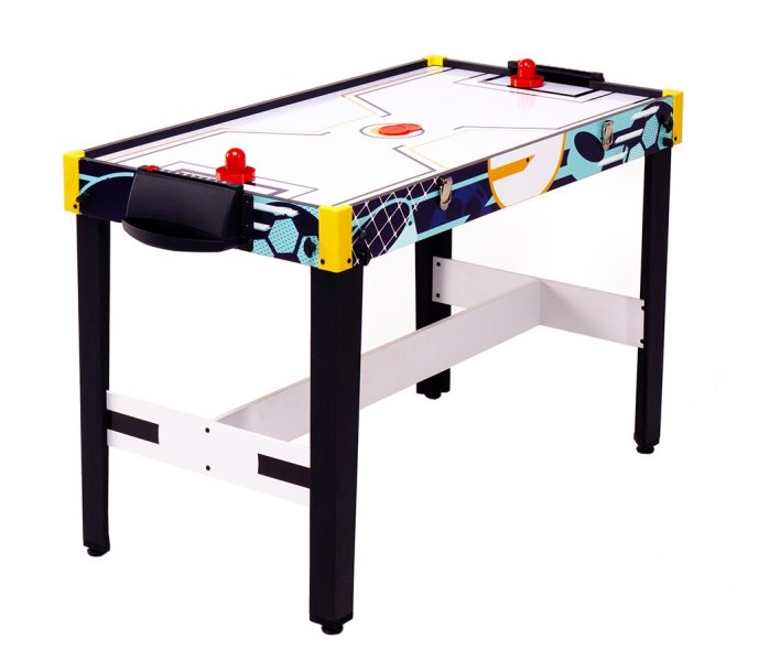 В комплекте: шайба для аэрофутбола. В игре принимают участие 2 игрока по правилам настольного футбола с включенным полем для аэрохоккея, используя специальную игровую шайбу. Перед началом игры не забудьте приподнять корзину для мячей со сторны обоих игроков;