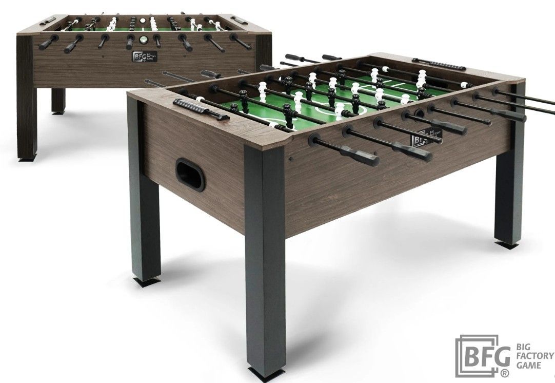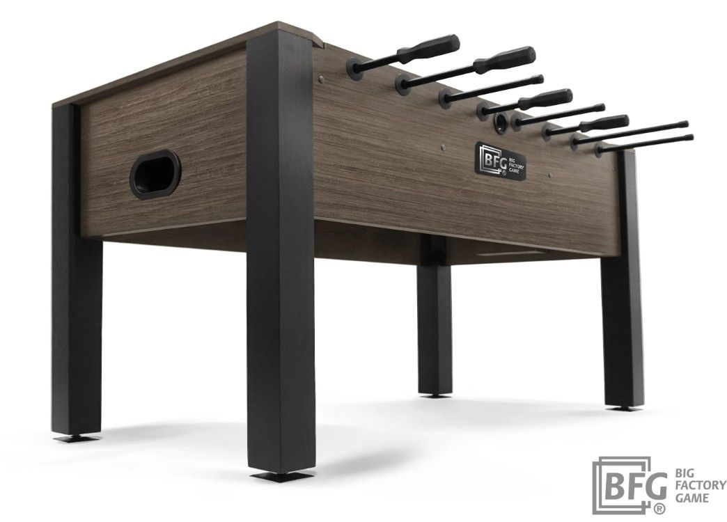 Стол оборудован профессиональными штангами и стилизованными фигурками игроков, выполненными из долговечных и прочных материалов. Ключевым преимуществом модели является материал - стол изготовлен из натурального массива древесины с применением шпона ценных пород.