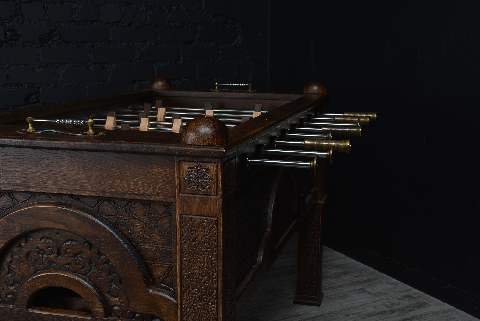 ✨ Античная Бронза и Темный Дуб: Футбольный стол украшен античной бронзой, придающей ему загадочный и величественный вид. Темный дуб в сочетании с этим оттенком создает неповторимый стиль, подчеркивая изысканность стола.