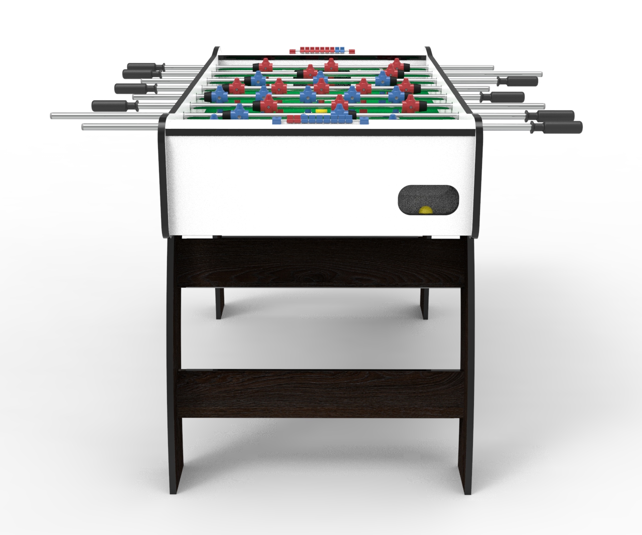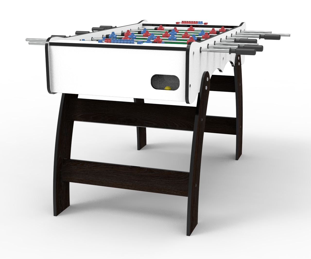 Футбольный стол "Эсквайр White" изготовлен в размерах, сопоставимых с размерами профессиональных столов (поле 120х70 см), но при этом он очень мобильный: его легко перенести или подвинуть, ведь его вес – 45 кг. Его также можно быстро разобрать, отсоединив опоры, и при необходимости перевезти на заднем сидении легкового автомобиля.