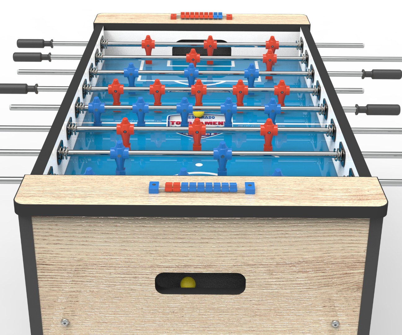 По своему оснащению "Desperado Tournament American Standart" аналогичен профессиональному футбольному столу "Premium Sport", но имеет более прочный корпус из многослойной фанеры HPL, что придает ему дополнительную устойчивость.