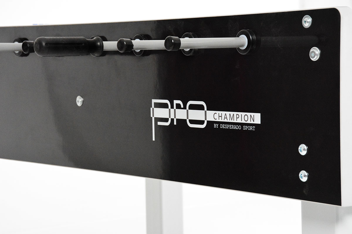 "Desperado Pro Champion" - Профессиональный настольный футбол. Главное отличие от других профессиональных столов "Desperado Sport", выполненных в американском стандарте - "европейская" компоновка игрового поля с "приподнятыми" углами и наличие всего одного игрока на вратарской линии.