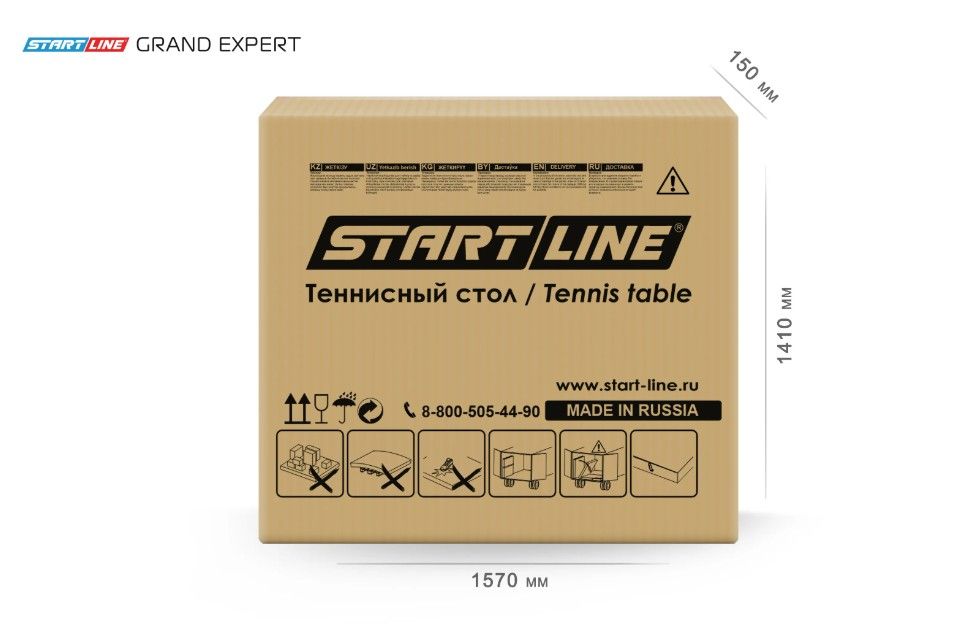 длина 274 см, ширина 152,5 см, высота 76 см. Толщина игрового поля