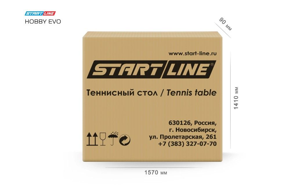 длина 273 см, ширина 152,5 см, высота 76 см. Толщина игрового поля