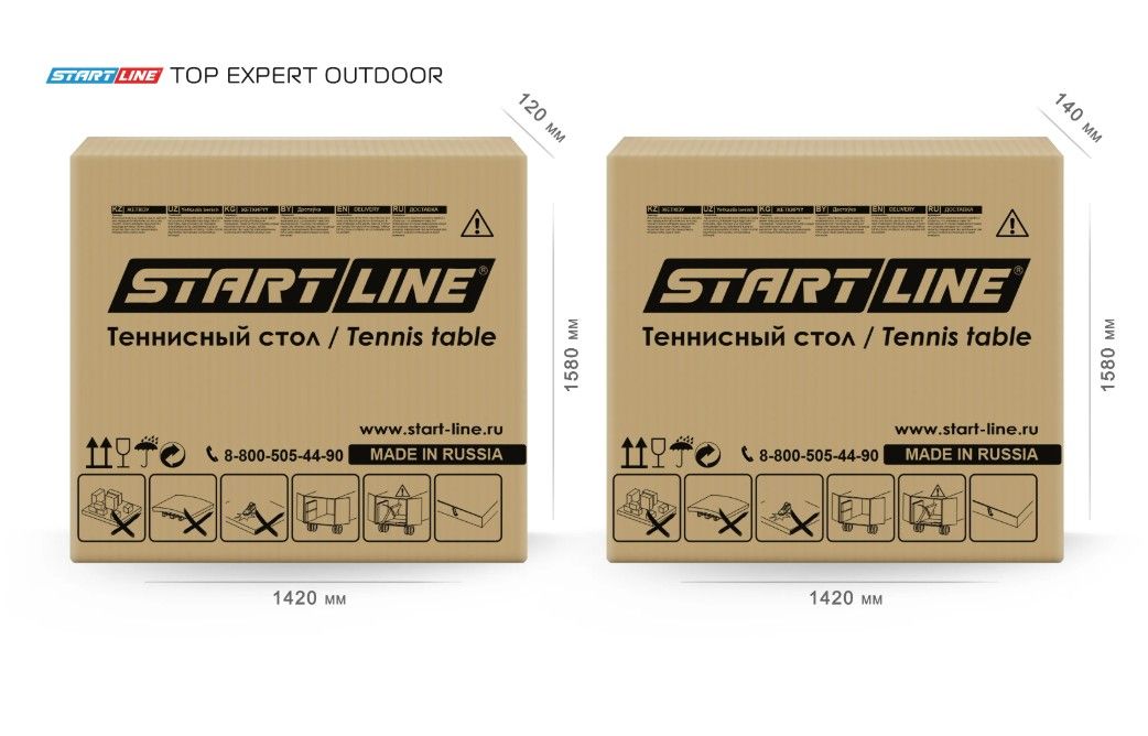 длина 274 см, ширина 152,5 см, высота 76 см. Толщина игрового поля