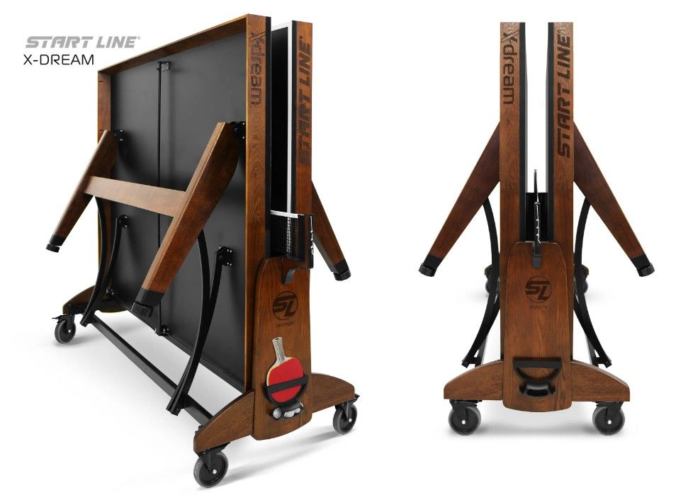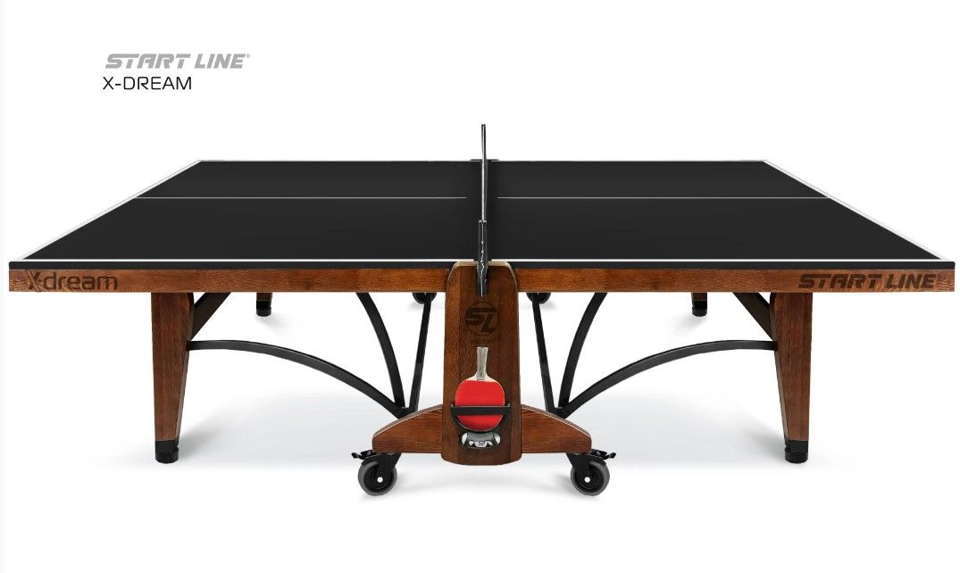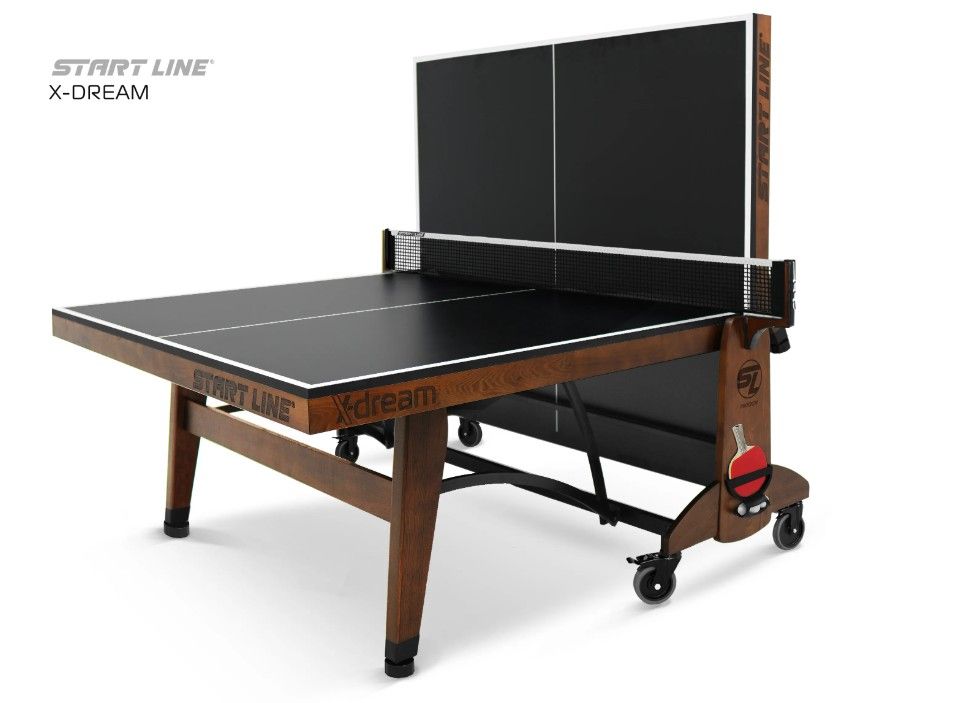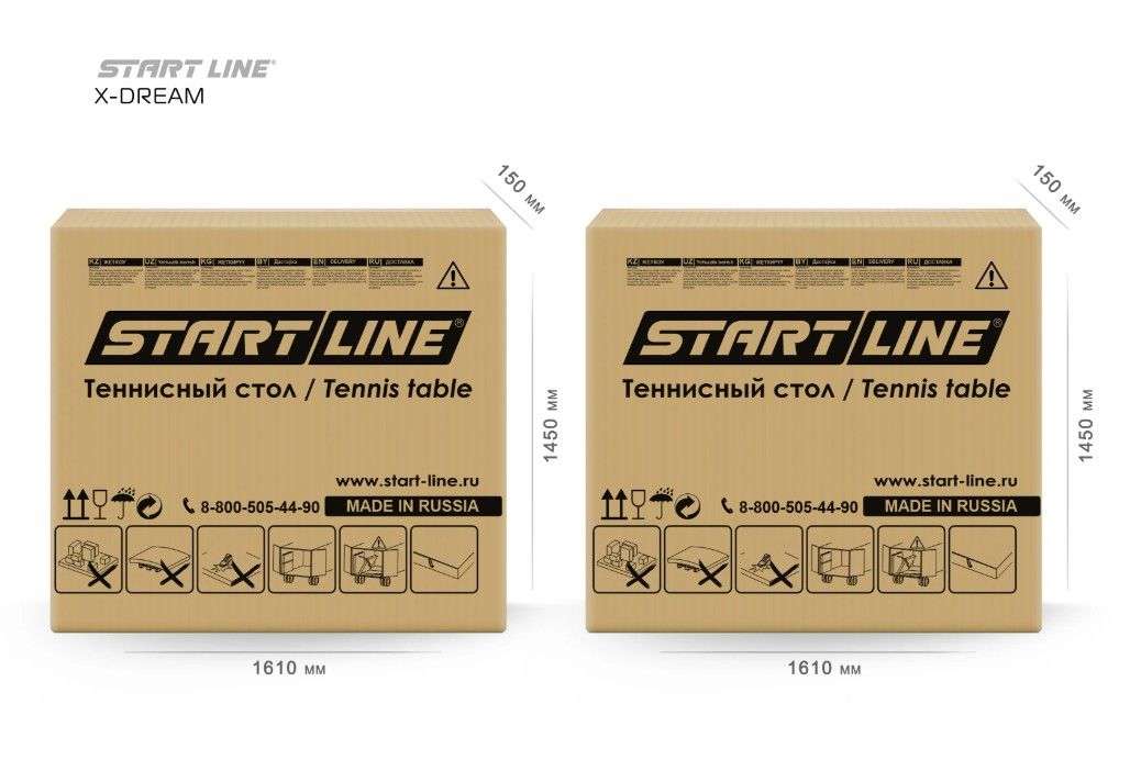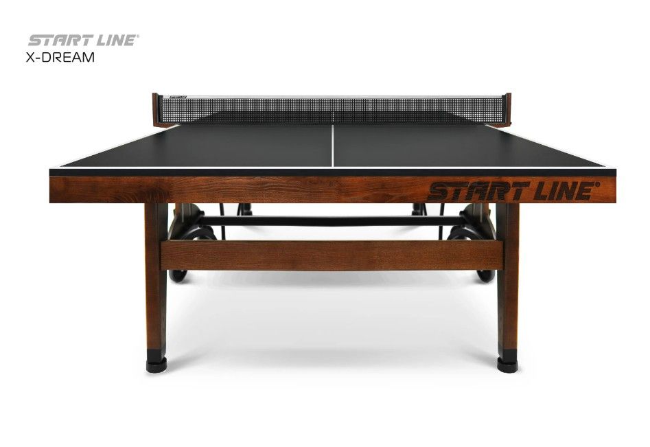 Теннисный стол X-DREAM создан под брендом Start Line, который многие годы является символом качества и инноваций в мире оборудования для настольного тенниса. О принадлежности стола к имени ведущего российского производителя говорит не только первоклассное качество и высочайшие игровые характеристики стола, но и элегантный логотип, украсивший боковую поверхность основания и столешницы модели.