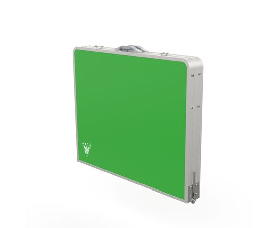 Стол компактно складывается, приобретая вид небольшого чемодана с ручкой. Его можно использовать дома, либо взять с собой на природу.