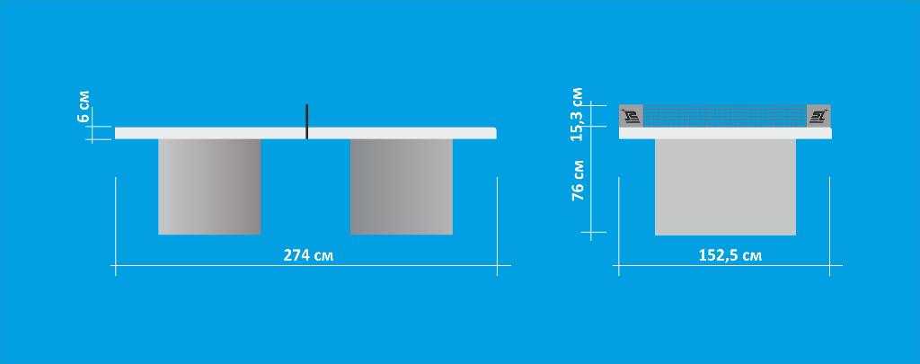 Цвет: комбинированный серый и черный. Игровое поле: камень Super Stone, толщина 60 мм. Покрыт специальной пропиткой. Сетка: встроенная, металлическая, 3 мм Опоры: бетонные, армированные Размер (международный стандарт): длина 274 см, ширина 152,5 см, высота 76 см. Упаковка: Поставляется в разобранном виде в 5-ти коробках. Размер коробки 1: 158 х 32 х 12 cм Размер коробки 2: 175 х 26 х 157 см Размер коробки 3: 175 х 26 х 157 см Размер коробки 4: 88 х 77 х 77 см. Размер коробки 5: 88 х 77 х 77 см. Вес: 1280 кг. Артикул: 60-716 Обратите внимание: