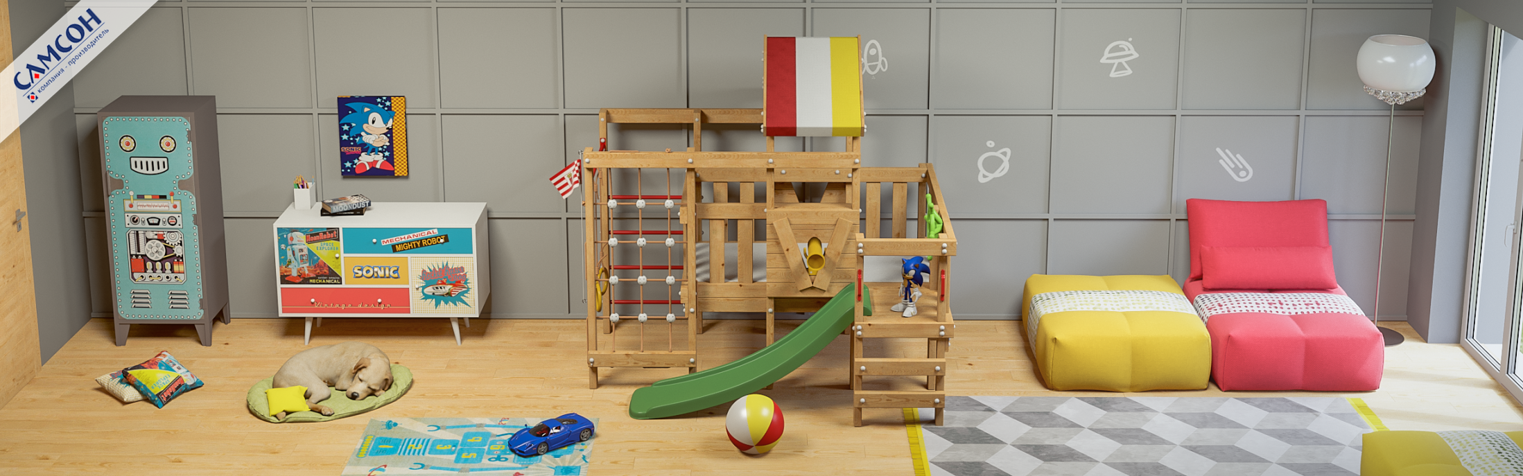 Детская игровая кровать-чердак Самсон Соник