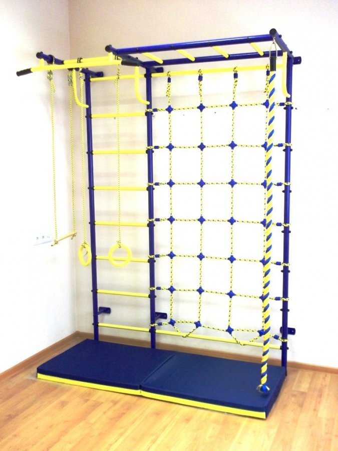 СГ000000532 Статус товара: В наличии Крепление: к стене Высота: 2,25 м Занимаемая площадь: 1,58 х 0,75 м Допустимая нагрузка: 100 кг Комплектация: канат, кольца, трапеция, турник, рукоход, канатный лаз. Мат в комплект не входит. Масса комплекса: 30 кг Возможные цвета: сине-желтый, зелено-желтый, красно-желтый, пурпурно-желтый Размеры упаковки: 1 место 2,41 х 0,20 х 0,22 м 2 место 0,52 х 0,40 х 0,11 м Характеристики