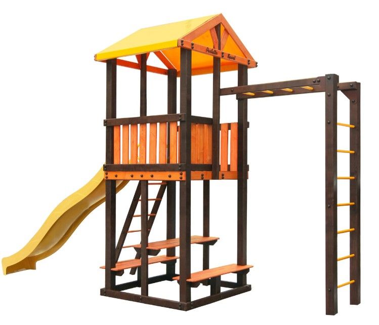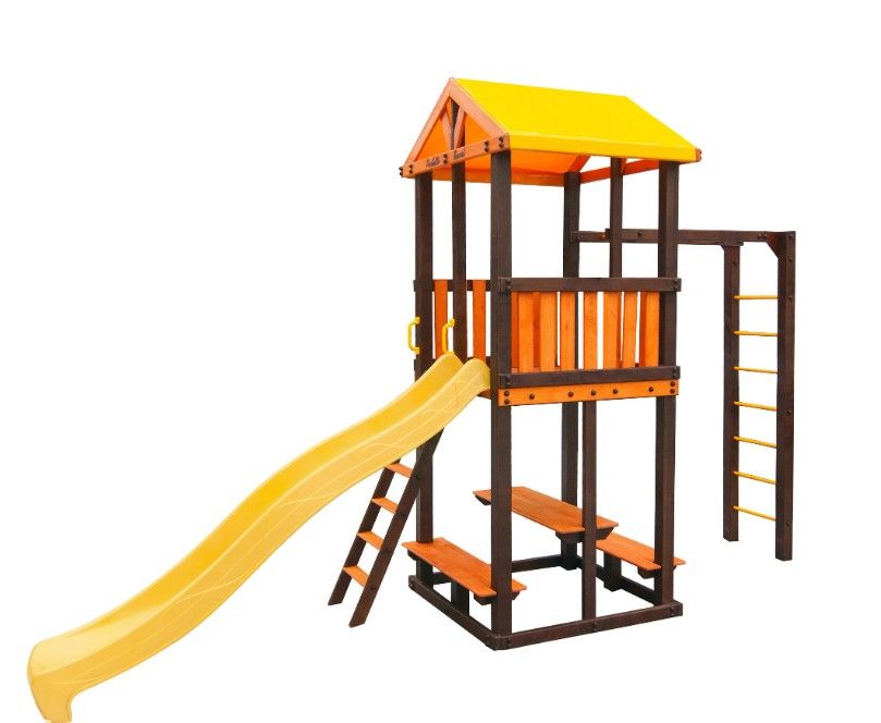 Комплектация: игровой домик, столик, лавочка - 2 шт, лестница, скат, ручка пластиковая - 2 шт, Р-опция