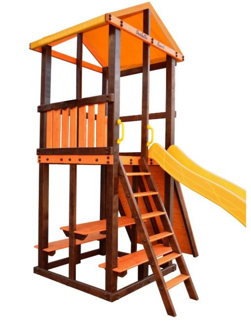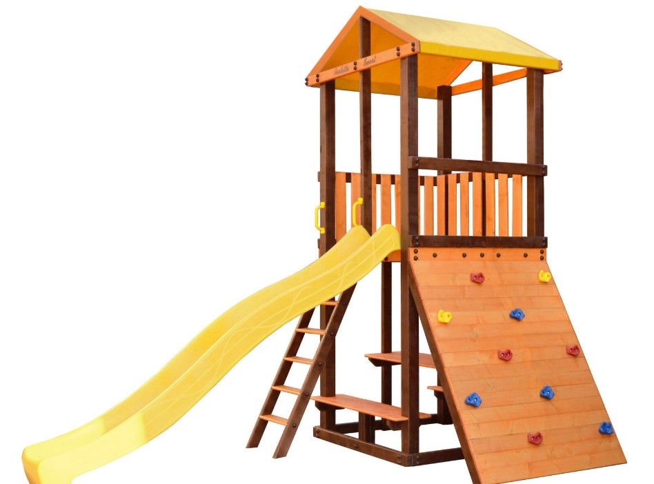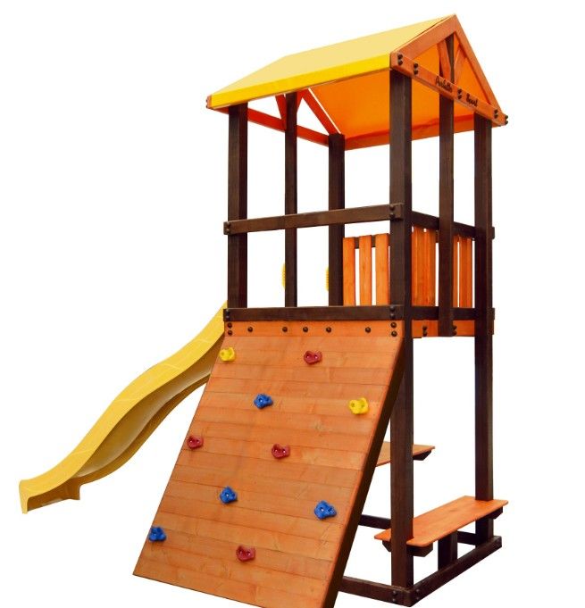 Комплектация: игровой домик, столик, лавочка - 2 шт, лестница, скат, ручка пластиковая - 2 шт, скалодром большой