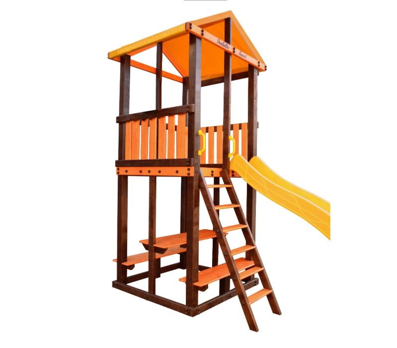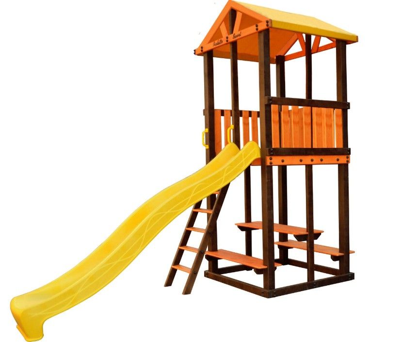 Комплектация: игровой домик, столик, лавочка - 2 шт, лестница, скат, ручка пластиковая - 2 шт