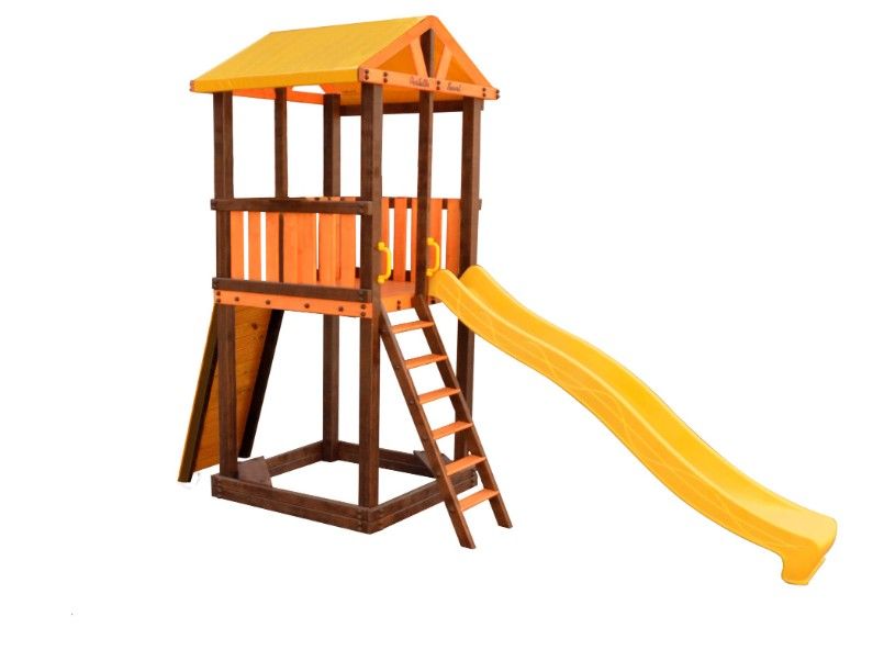 Комплектация: игровой домик, песочница, лестница, скат, ручка пластиковая - 2 шт, скалодром маленький
