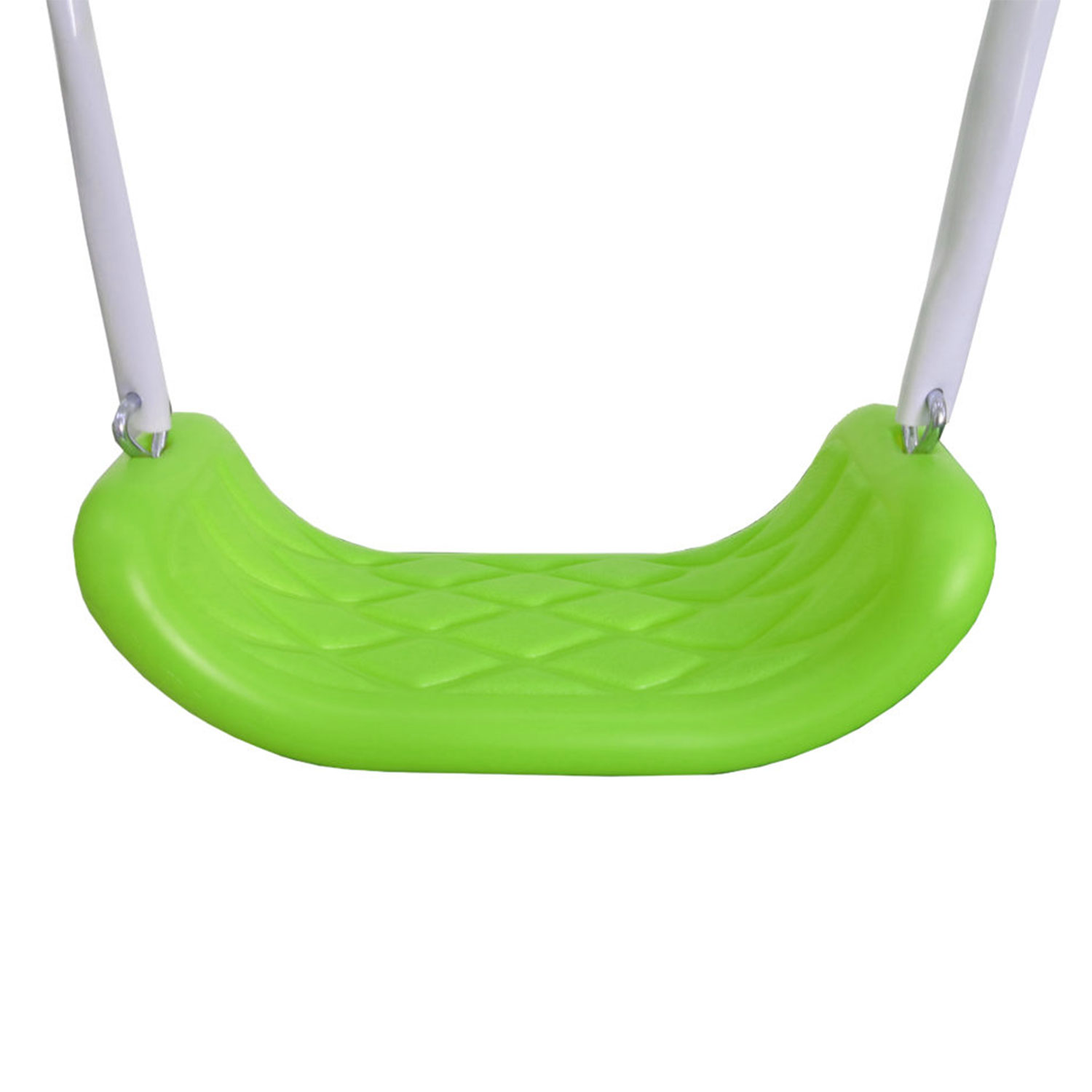 Качели и горка изготовлены из пластмассы, устойчивой к воздействию солнечных лучей.