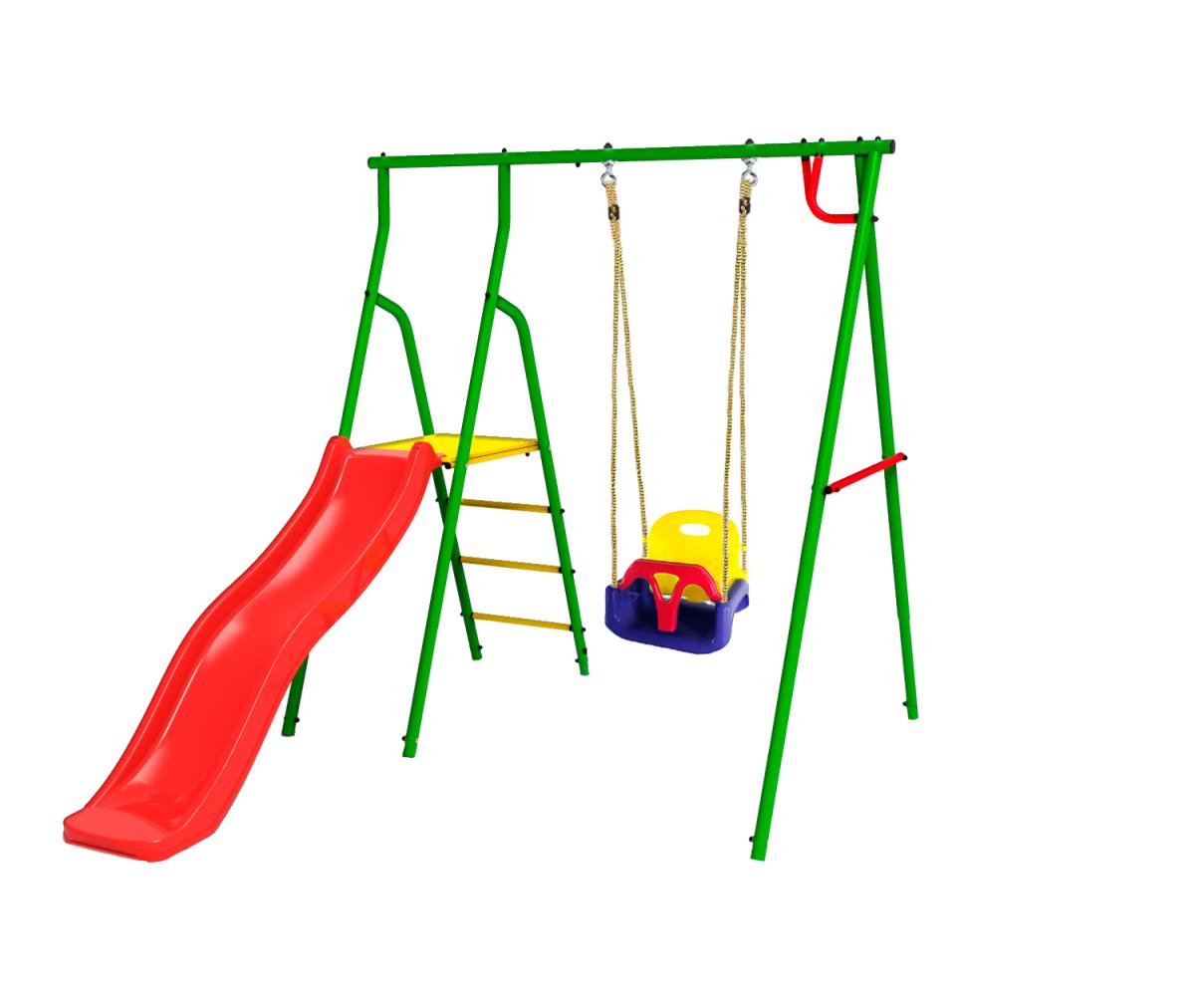 — Комплектация: горка пластиковая 1,6 м, подвесные детские качели 3в1