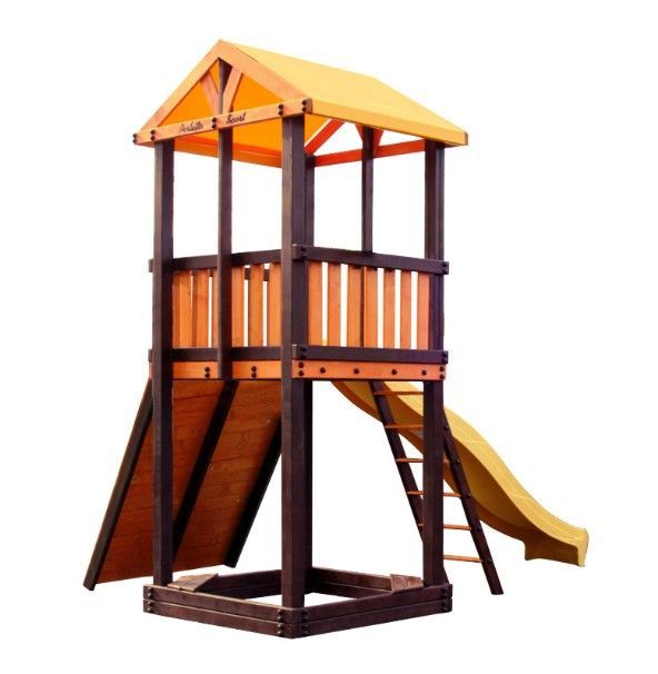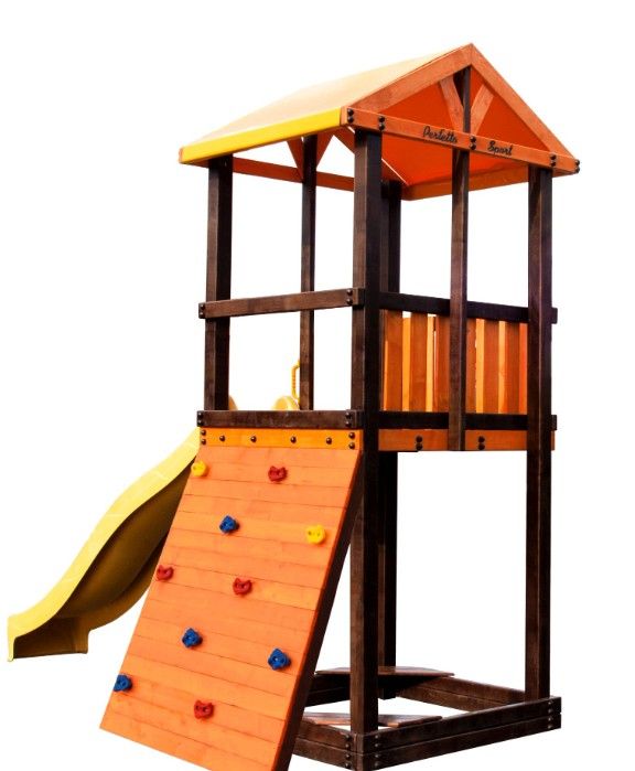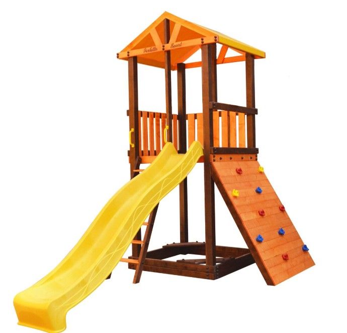 Комплектация: игровой домик, песочница, лестница, скат, ручка пластиковая - 2 шт, скалодром большой