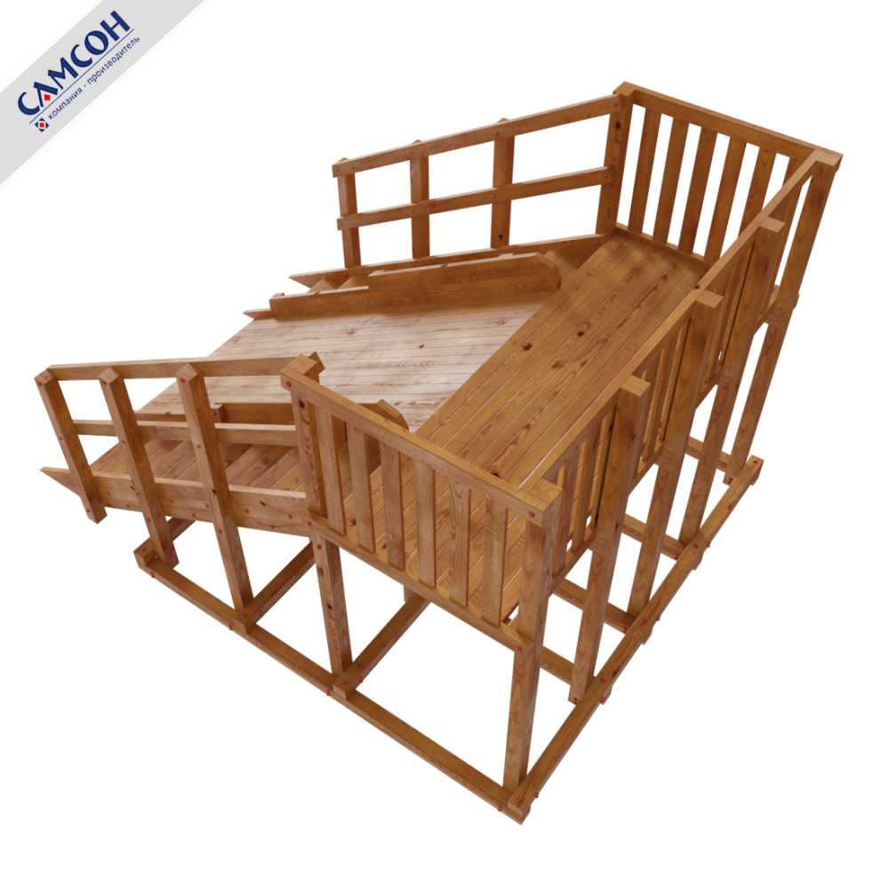 Каркас изделия изготовлен из клеенного бруса лиственницы, ограждение и иные элементы из массива сосны.
